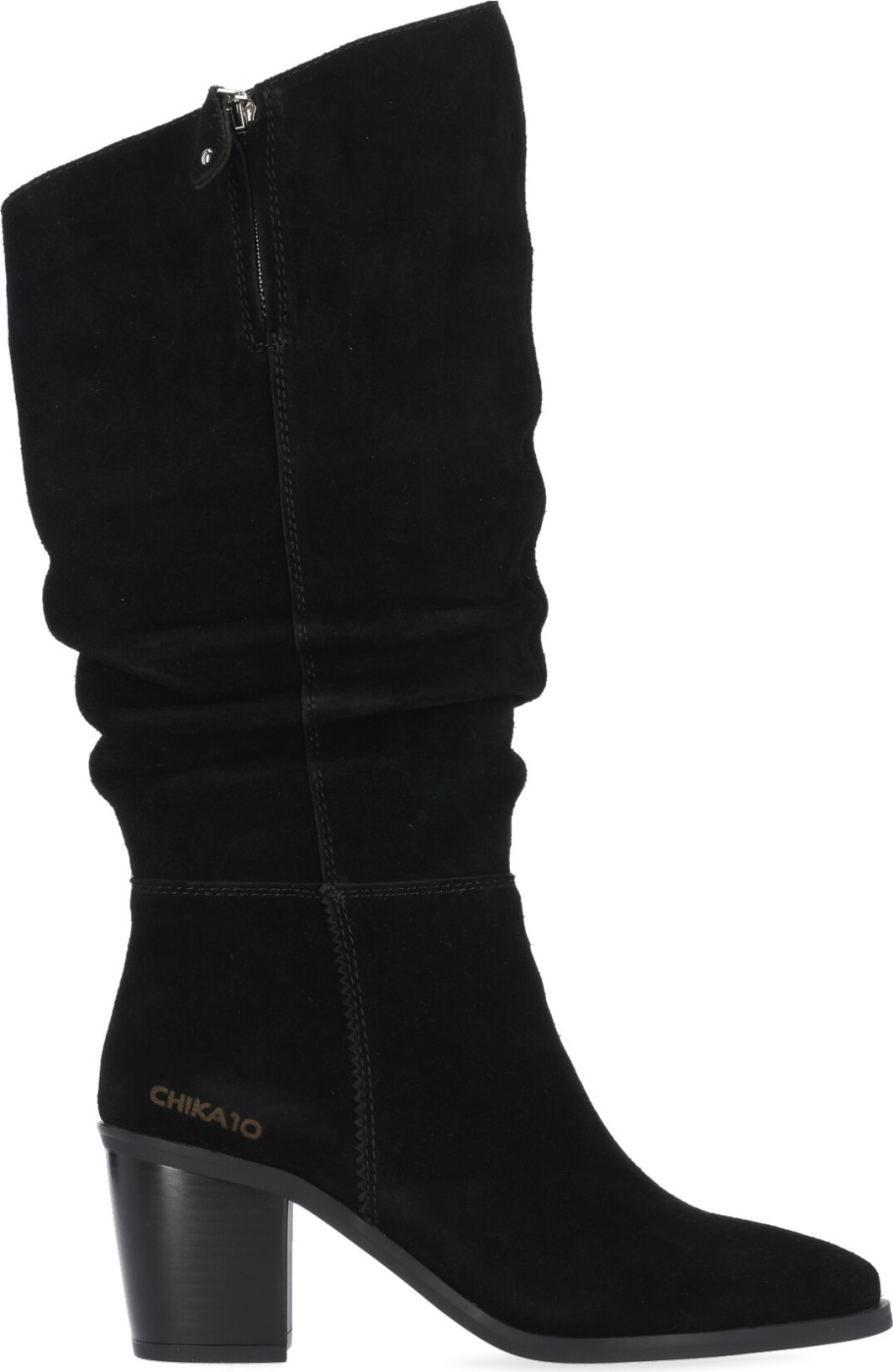 Comoda y espectacular bota de piel con tacón de 7 cm arrugada. Cremellera lateral para dar más amplitud a la hora de meter el pantalón y para piernas gorditas.