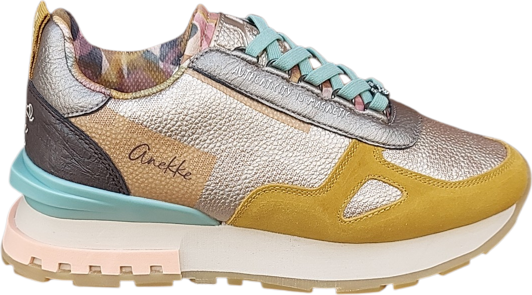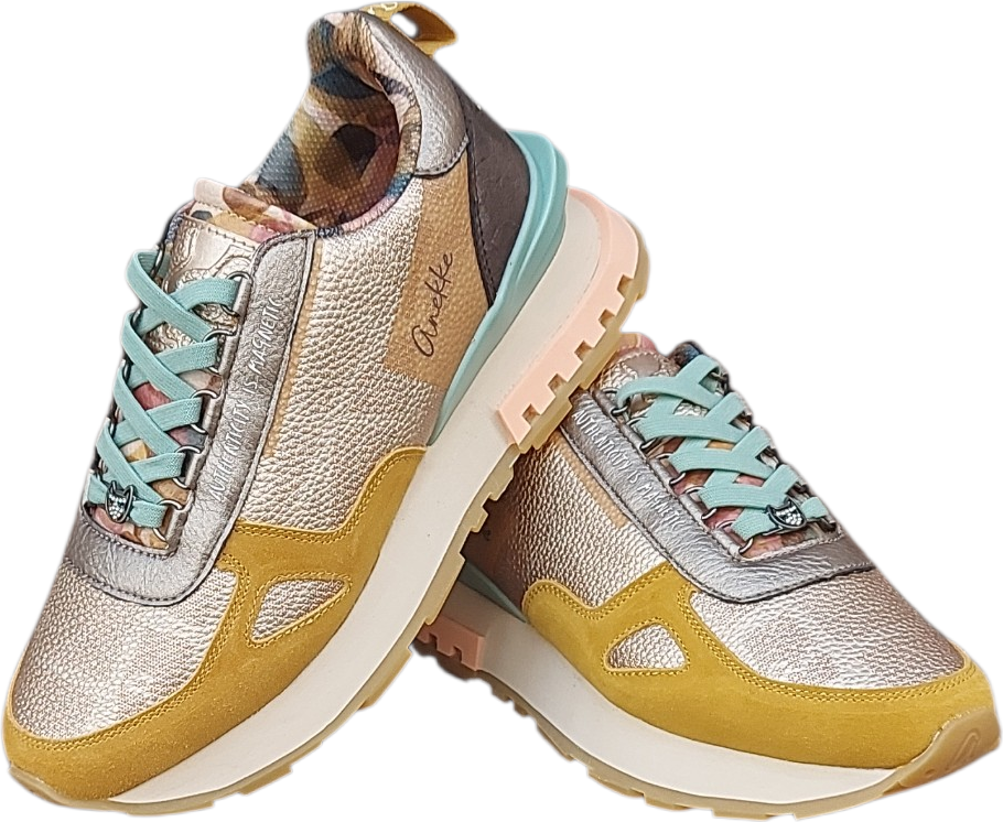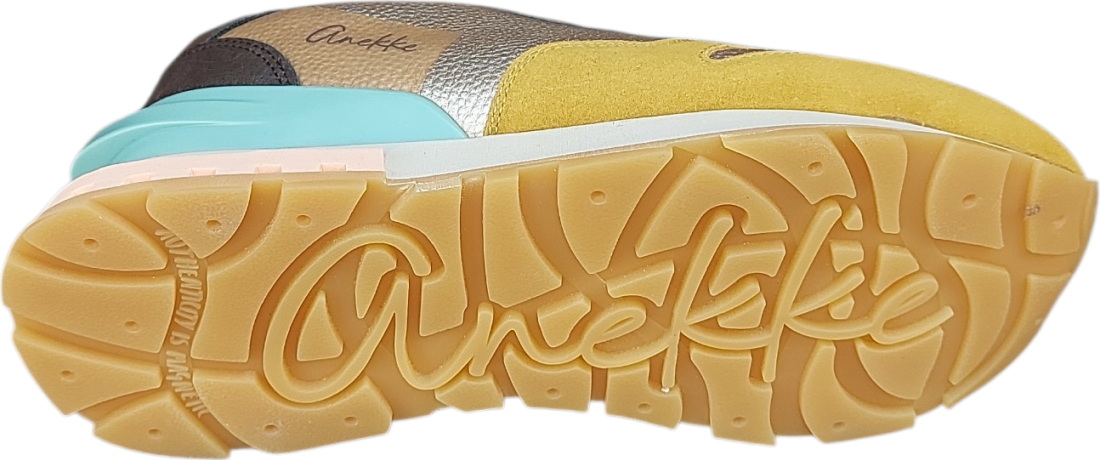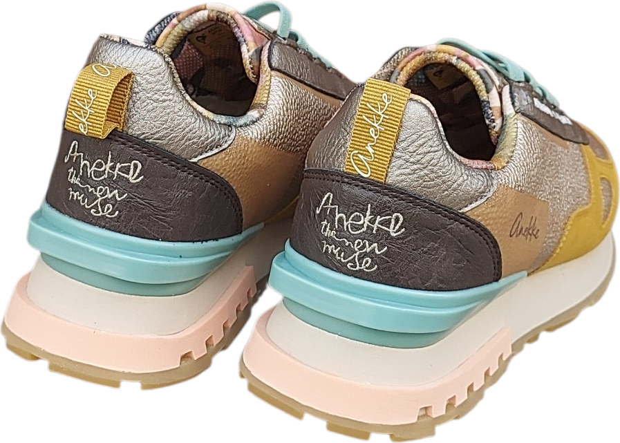 Estos deportivos Anekke combinan tonos amarillos y dorados con delicados toques en azul claro, creando un diseño luminoso y lleno de energía.