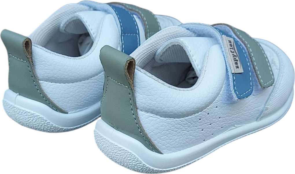 Deportivos infantiles de la marca Zapy ligeros, fabricados en piel, de puntera ancha para la libertad de los dedos y suelas de goma fina muy flexible y antideslizante, sin drop con unas plantillas de piel extraíbles. Tienen refuerzos de PVC en las punteras para proteger de la abrasión.