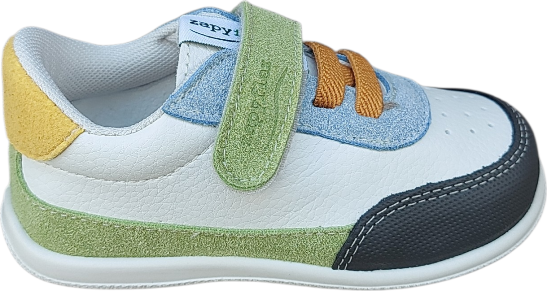 Zapatilla para niños barefoot respetuoso de la marca Zapy gama zapyflex con varios colores en la misma zapatilla.