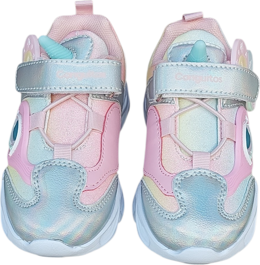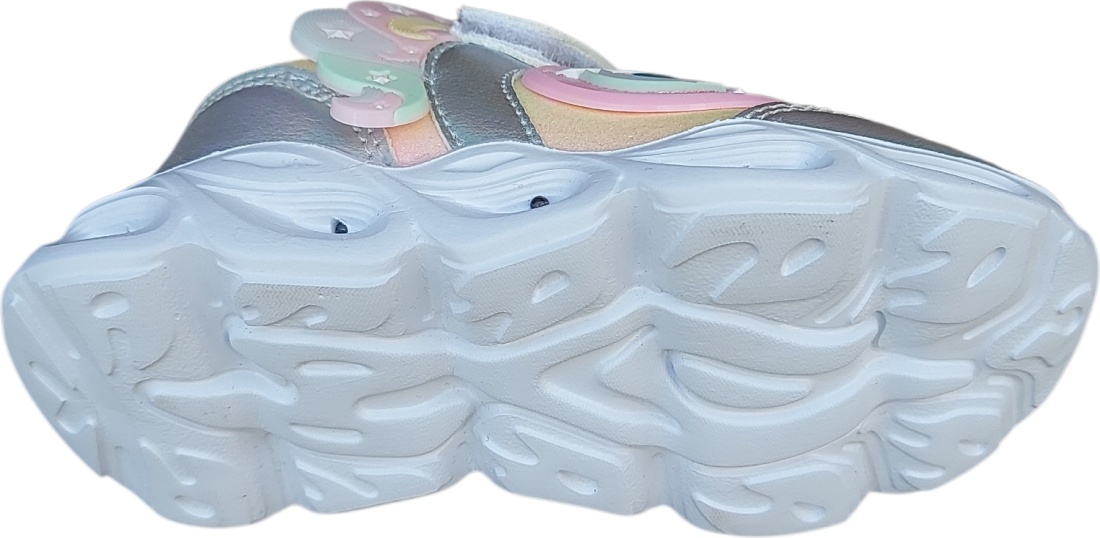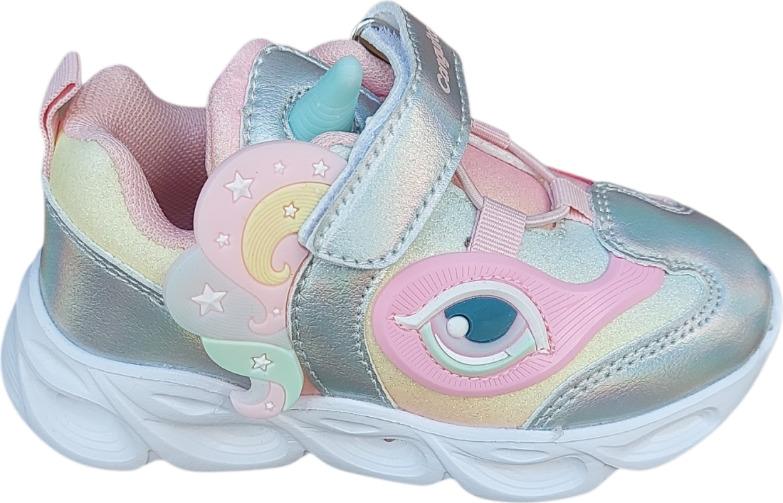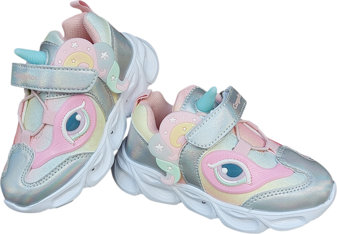 Las Zapatillas con luz y Unicornio de Arcoiris están hechas para peques que adoran los colores, los unicornios y las luces. Estas zapatillas llenas de fantasía combinan tonos plateados, rosa purpurina, detalles con destellos y un simpático unicornio para convertir cada paso en pura magia.