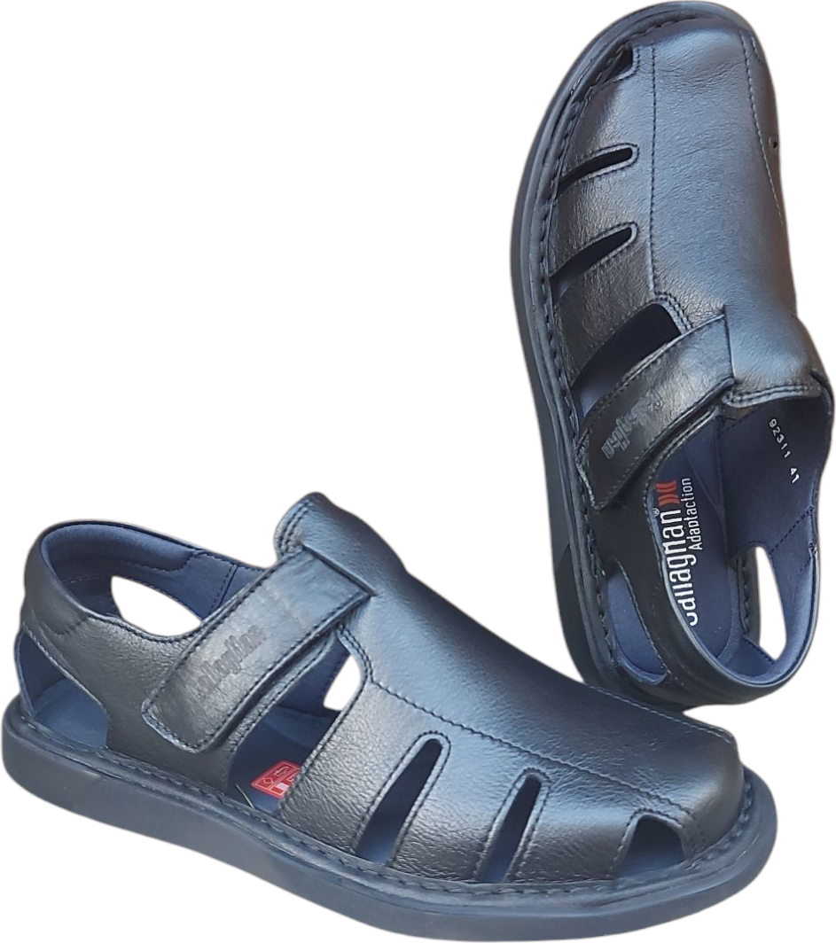 Sandalia para hombre fabricada en piel máxima calidad y resistencia por la fabrica Callaghan. Elaborado con piel natural curtida de forma artesanal y de gran adaptabilidad. Forro interior Transpirable. De tejido técnico transpirable, antibacteriano y antiolor dotado de unas microcápsulas con olor a menta.