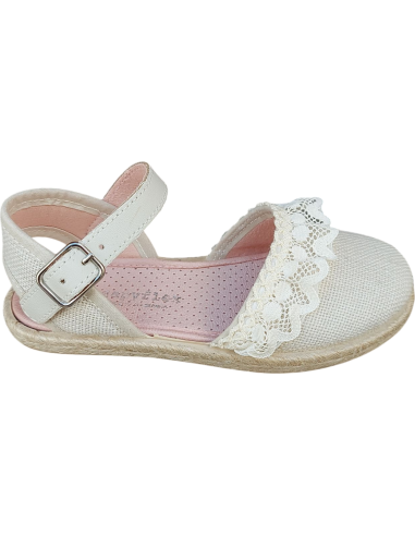 Bonitas alpargatas con volante de puntilla para las niñas más presumidas de la casa que quieran lucir unas alpargatas de vestir con un nuevo diseño súper bonito. Este modelo puedes usarlo como alpargata de ceremonia para niña gracias a su bonito acabado con puntilla bicolor dándole un toque diferente y sofisticado diferente del modelo más clásico. Además, estas espardeñas de lino llevan suela de esparto con goma para que pueda estar cómoda y fresca todo el día sin necesidad de un segundo calzado.