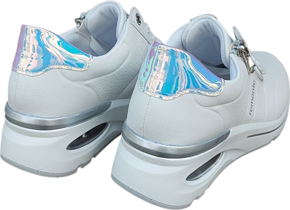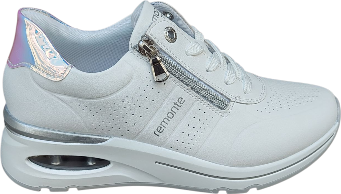 Zapato deportivo fabricado en piel de primera calidad de la marca Remonte con cremallera lateral y cordón en color blanco.